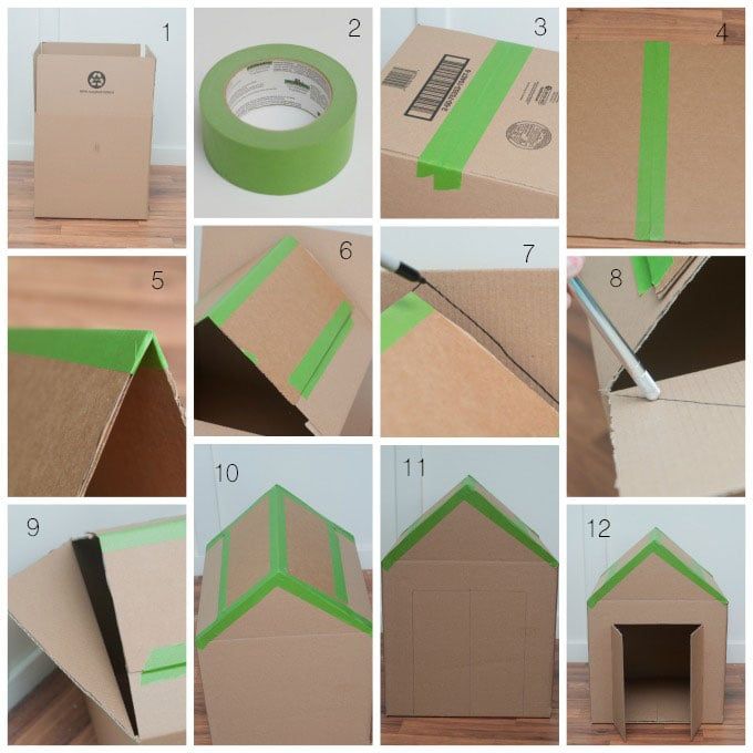 Постройте для своей маленькой собачки собственный маленький домик внутри дома из картонной коробки, предназначенной для других целей. Вашей собаке понравится иметь собственное пространство, и вы можете украсить его такими милыми картонными черепицами. Обратите внимание, что это не сработает для уличной собачьей будки, очевидно, из-за картона, но это отлично подходит для того, чтобы дать вашему маленькому псу собственное маленькое место внутри дома.
