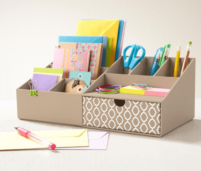 23. Картонный органайзер для рабочего стола, перепрофилированный