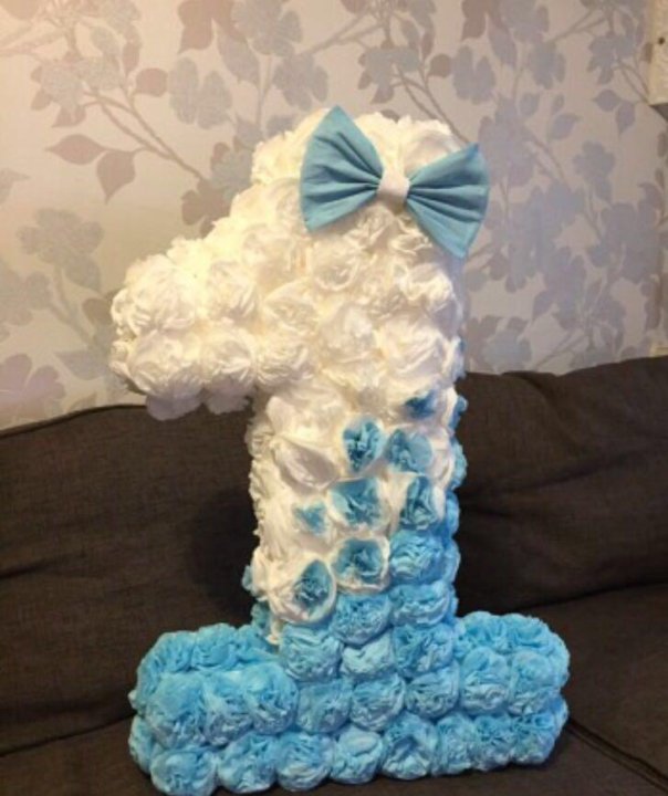 Фото: mamanjackjack.blogspot.com Просто шикарная и невероятно нарядная цифра получится из кусочков гофрированной бумаги, приклеенной на шаблон необходимой цифры!
