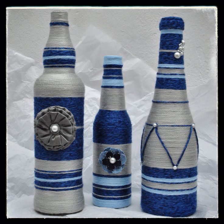 Уникальность декорирования бутылок нитками в том, что пряжа