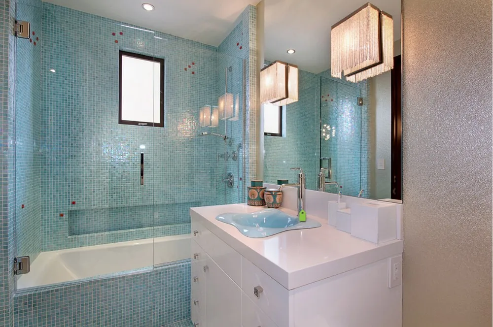 - Мозаичная плитка должна отвечать базовым требованиям, предъявляемым к поверхностям для отделки ванных комнат.